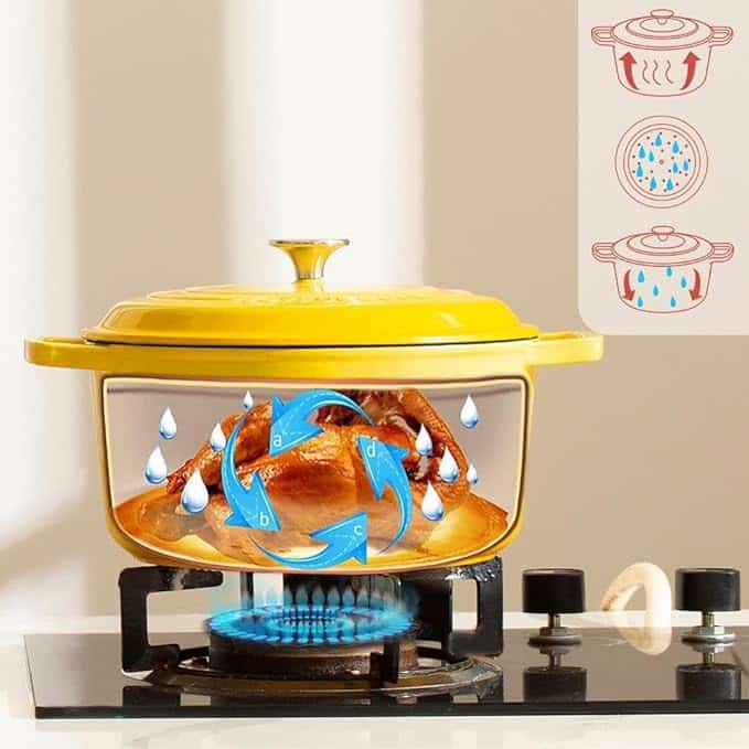 Be the first to review “Yellow Enameled Cast Iron Dutch Oven (5.6QT)”